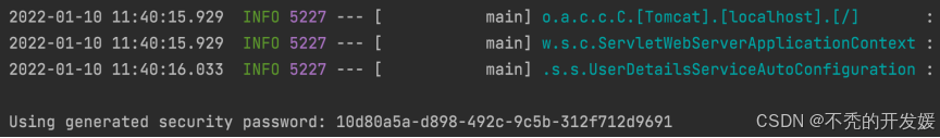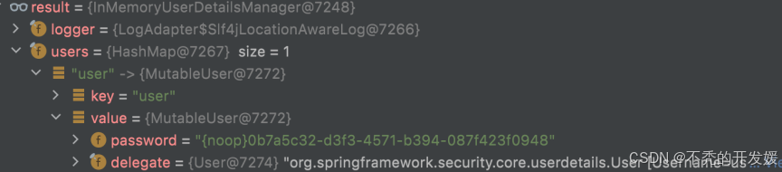 这就是默认生成 user 以及 uuid 密码过程! 另外看明白源码之后,就知道只要在配置文件中加入如下配置可以对内存中用户和密码进行覆盖。