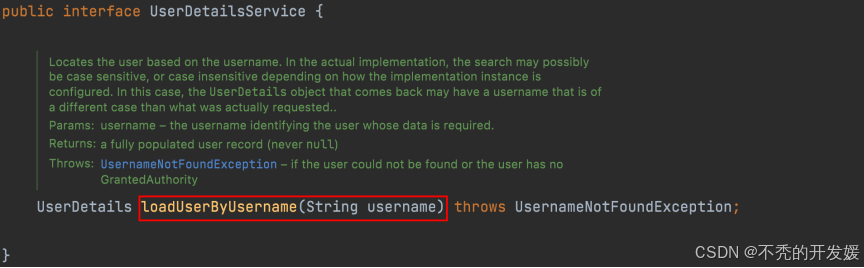 UserDetails loadUserByUsername(String username) throws UsernameNotFoundException;
