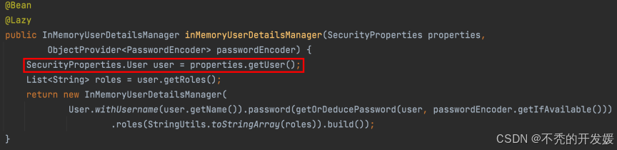 public InMemoryUserDetailsManager inMemoryUserDetailsManager(SecurityProperties properties,