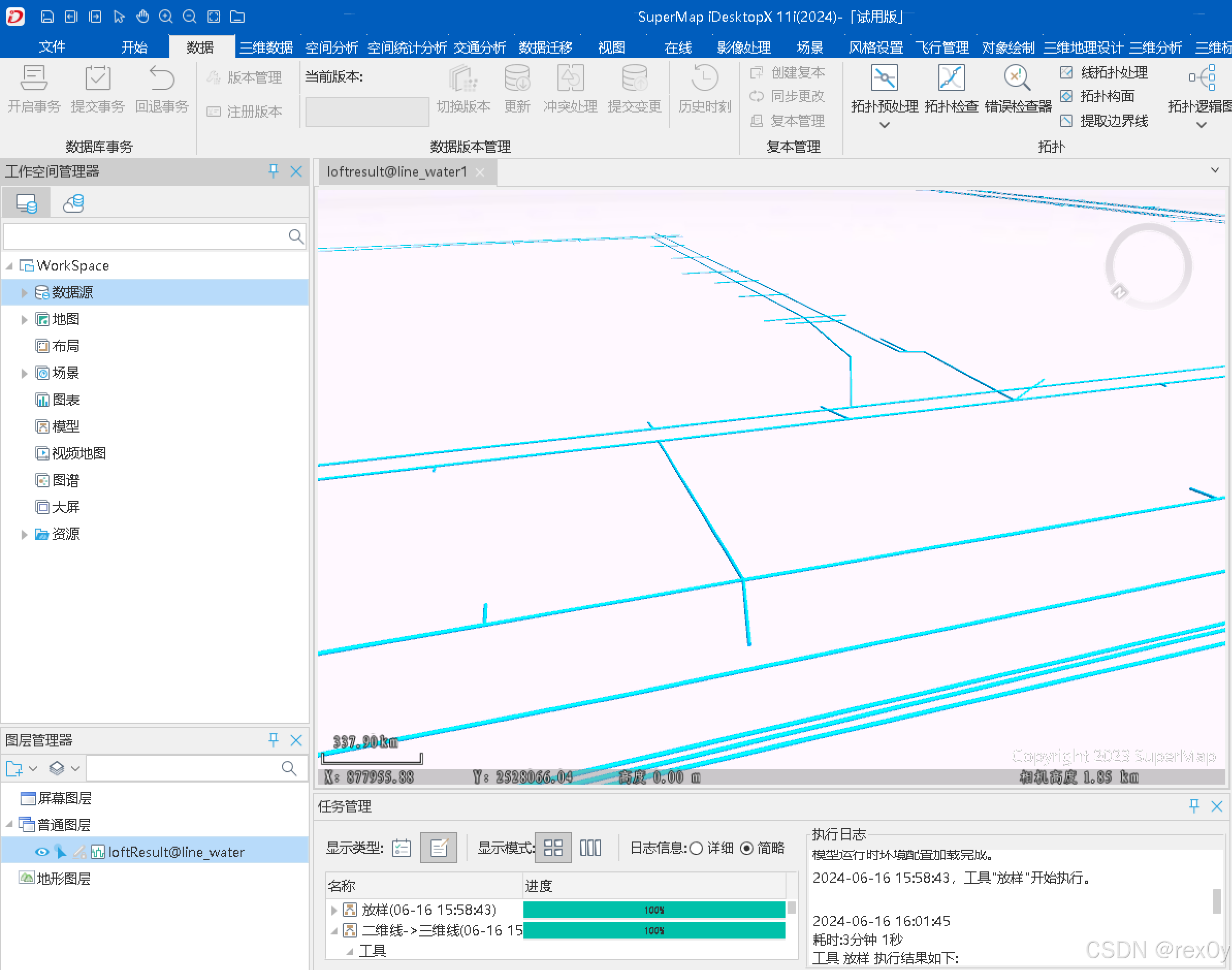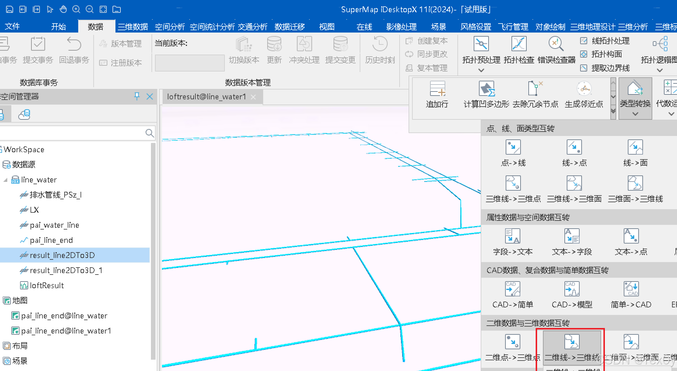 1、将准备好的二维线图层在 supermap destopX 11i
