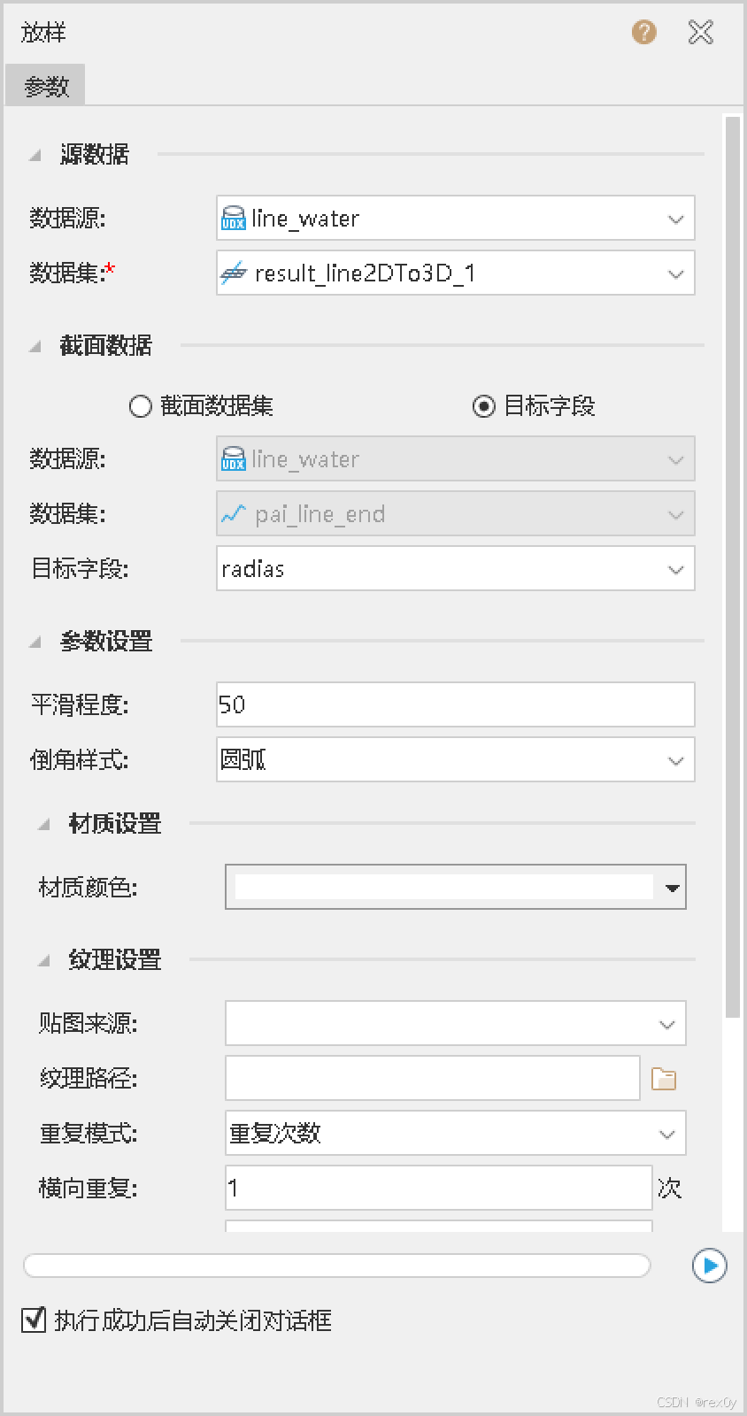数据集是刚转的三维线,目标字段是增加的管径字段,材质如果找到材质png图片可以用。