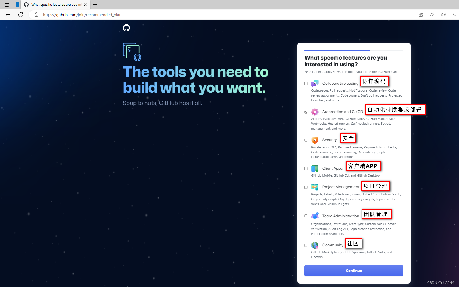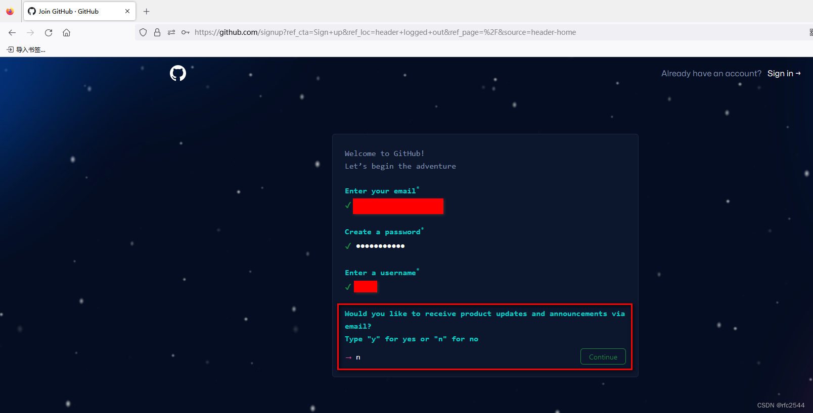 ->Would you like to receive product updates and announcements via email?(注册邮箱是否想要接收产品更新和公告)->Continue->