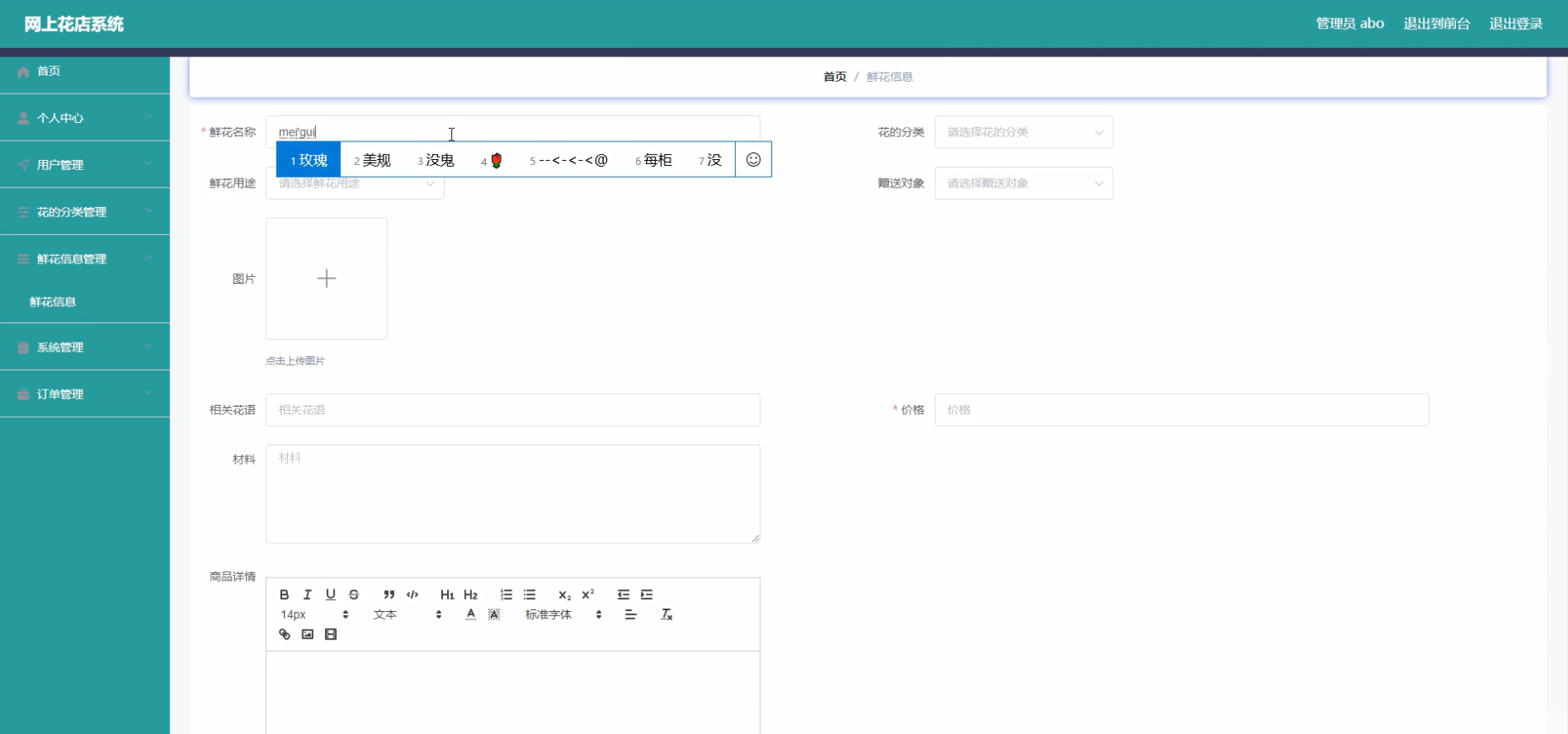 JAVA毕设项目网上花店系统(java+VUE+Mybatis+Maven+Mysql)