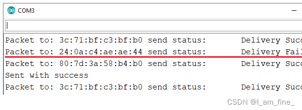 Serial.println(status == ESP_NOW_SEND_SUCCESS ? "Delivery Success" : "Delivery Fail");