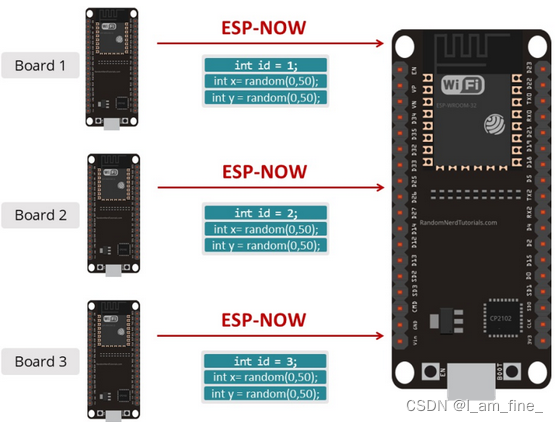- ESP32接收板接收来自所有发送方的消息,并识别发送消息的板子