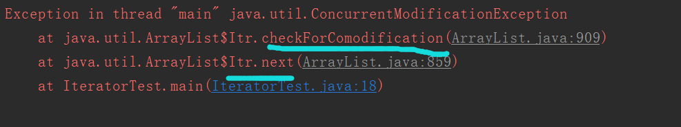 remove()方法并不会抛出异常,抛出异常的是Itr的next方法!!但是remove()方法会导致Itr.next()发生异常。
