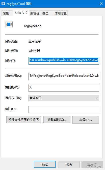 成功在桌面上创建了名为regSyncTool的快捷方式,双击运行正常。