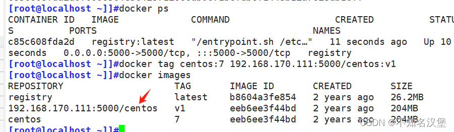 docker tag centos:7 192.168.170.111:5000/centos:v1