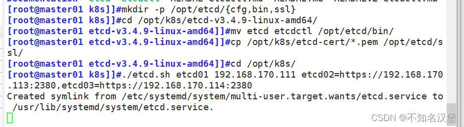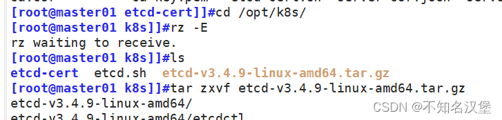 4.4上传 etcd-v3.4.9-linux-amd64.tar.gz 到 /opt/k8s 目录中,启动etcd服务