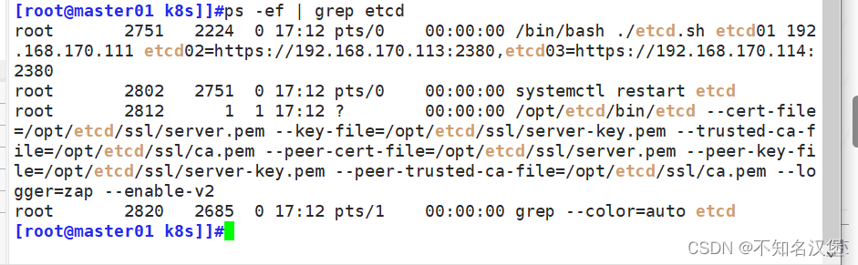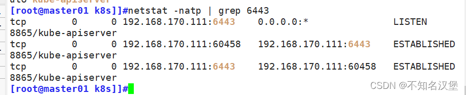 #检查进程是否启动成功,过滤kube-apiserver最上面一个后面会有-etcd-servers=https://192.168.170.111:2379,https://192.168.170.113:2379,https://192.168.170.114:2379 --bind-address=192.168.170.111 --secure-port=6443此信息为正常,注意ip要改为自己的ip地址