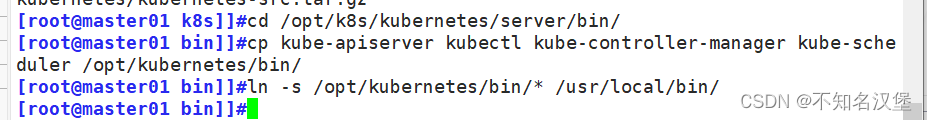 复制master组件的关键命令文件到 kubernetes工作目录的 bin 子目录中