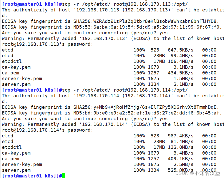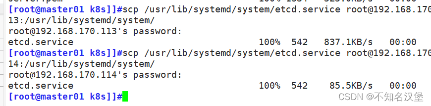 4.6把etcd相关证书文件、命令文件和服务管理文件全部拷贝到另外两个etcd集群节点
