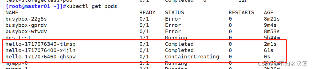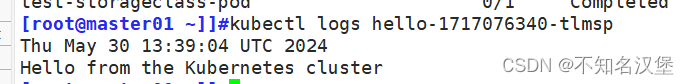 [root@master01 ~]]#kubectl logs hello-1717076340-tlmsp