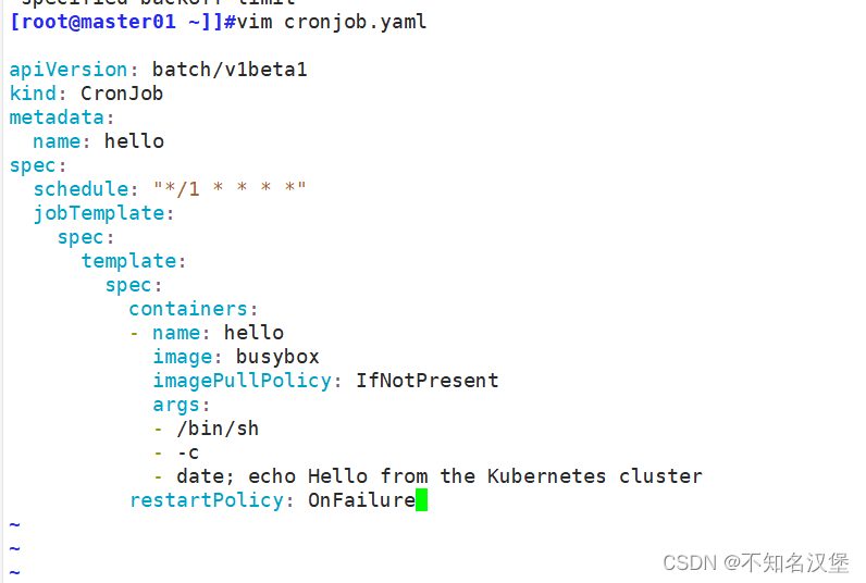 concurrencyPolicy: Allow #要保留的失败的完成作业数(默认为1)