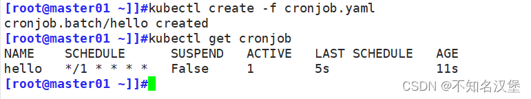 startingDeadlineSeconds: 15 #pod必须在规定时间后的15秒内开始执行,若超过该时间未执行,则任务将不运行,且标记失败