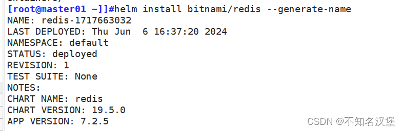 helm install bitnami/redis --generate-name #不指定 release 的名字时,需使用 –generate-name 随机生成一个名字