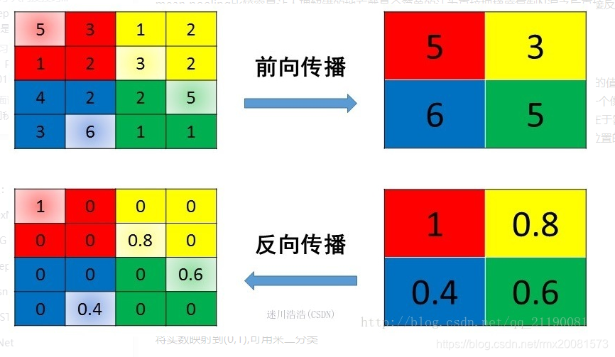 mean pooling比较容易让人理解错的地方就是会简单的认为直接把梯度复制N遍之后直接反向传播回去,但是这样会造成loss之和变为原来的N倍,网络是会产生梯度爆炸的。