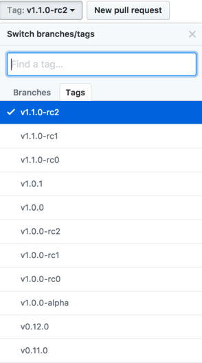 我们从GitHub代码仓库中将1.1.0版本的TensorFlow源代码下载下来,在Tags中选择1.1.0版本将跳转到1.1.0版本的代码仓库[1],如图2-1所示。