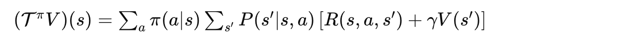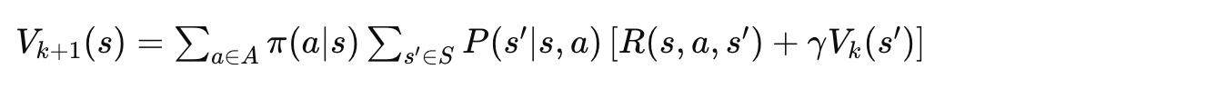 │ V_{k+1}(s) = Σ_a π(a|s) Σ_s' P(s'|s,a)[R + γV_k(s')] │