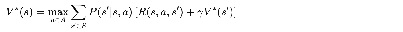 │ V*(s) = max_a Σ_s' P(s'|s,a)[R + γV*(s')] │