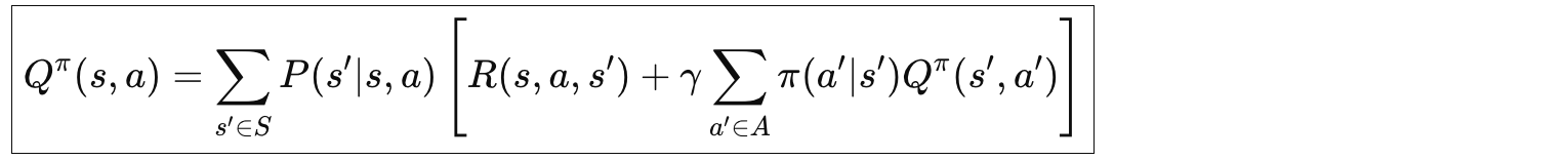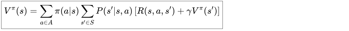 │ V^π(s) = Σ_a π(a|s) Σ_s' P(s'|s,a)[R + γV^π(s')] │