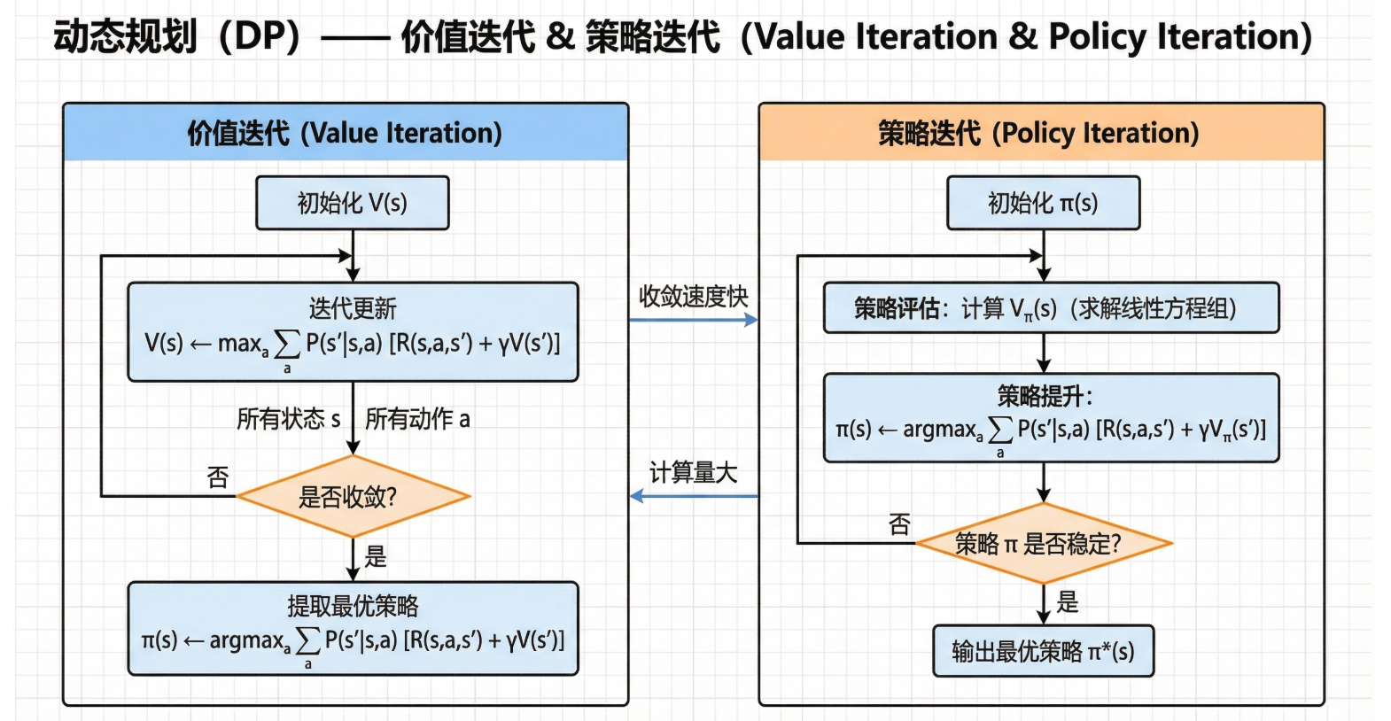 | 动态规划基础 | 需要完整环境模型,基于贝尔曼方程迭代求解 |