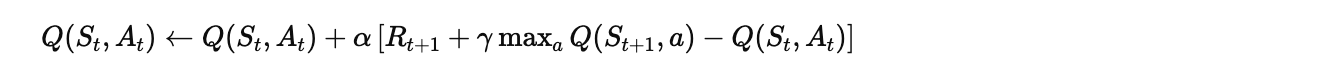 Q(S, A) ← Q(S, A) + α[R + γ max_a Q(S', a) - Q(S, A)]