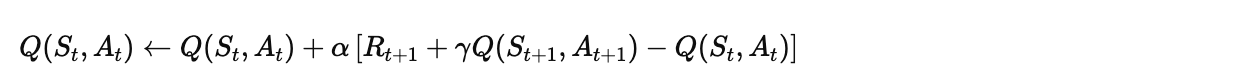 Q(S, A) ← Q(S, A) + α[R + γQ(S', A') - Q(S, A)]