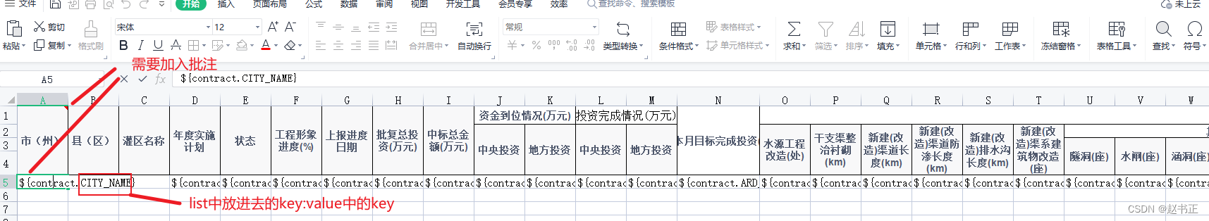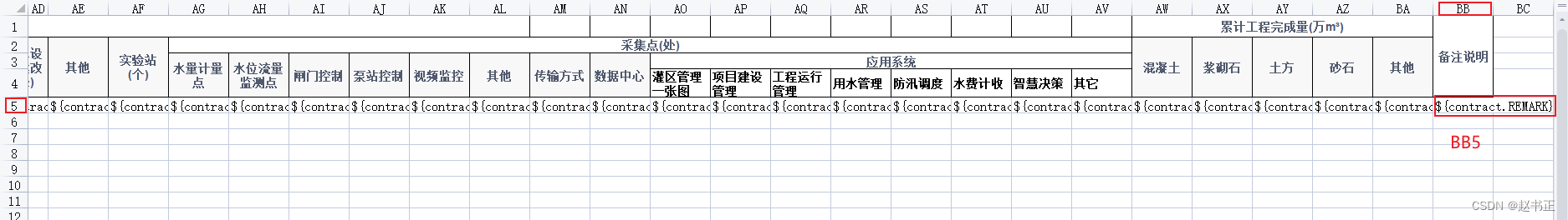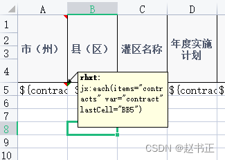字段批注(jx:each(items="contracts" var="contract" lastCell="BB5"))
