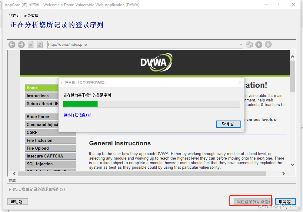 点击我已登陆到站点
