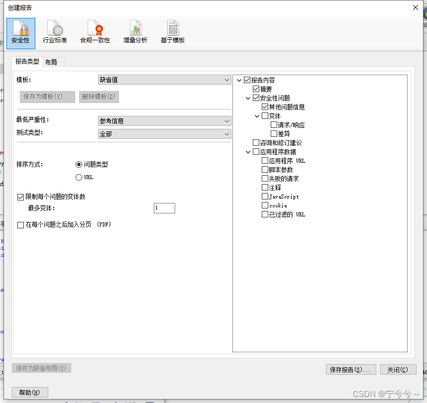AppScan集成多种行业标准的报告模板,选择想要的报告模板,点击保存就生成了报告