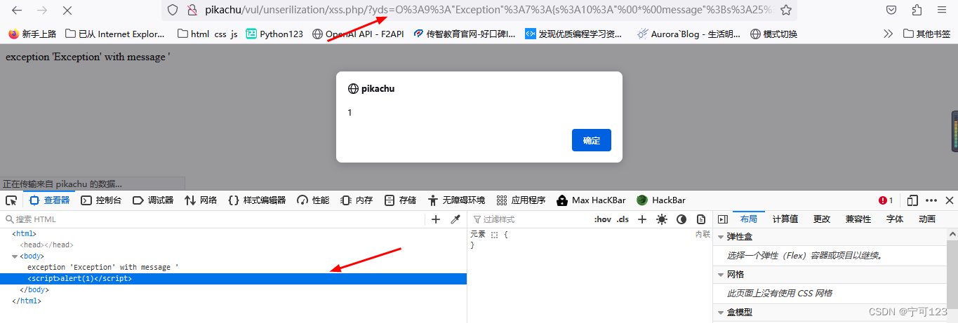_toString() 如果在代码审计中有反序列化点,但是在原本的代码中找不到 pop 链该如何? N1CTF 有一个无 pop 链的反序列化的题目,其中就是找到 php 内置类来进行反序列化 (1)xss error exception 类 测试代码: