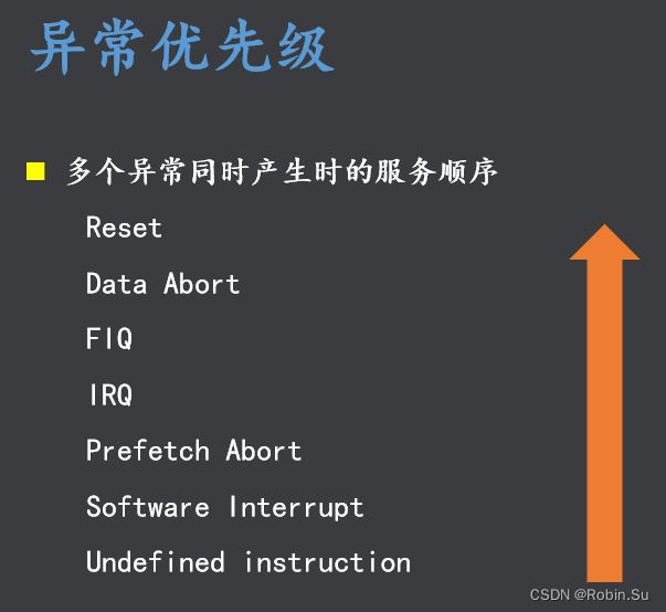 异常机制:异常的优先级 异常源 中断向量表