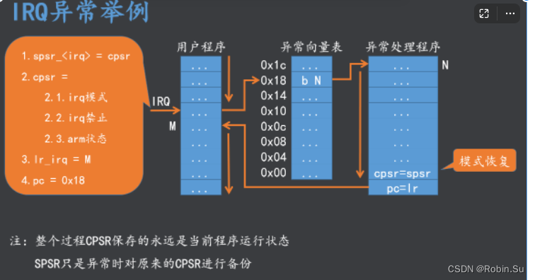 - 拷贝CPSR中的内容到对应的异常模式下的SPSR