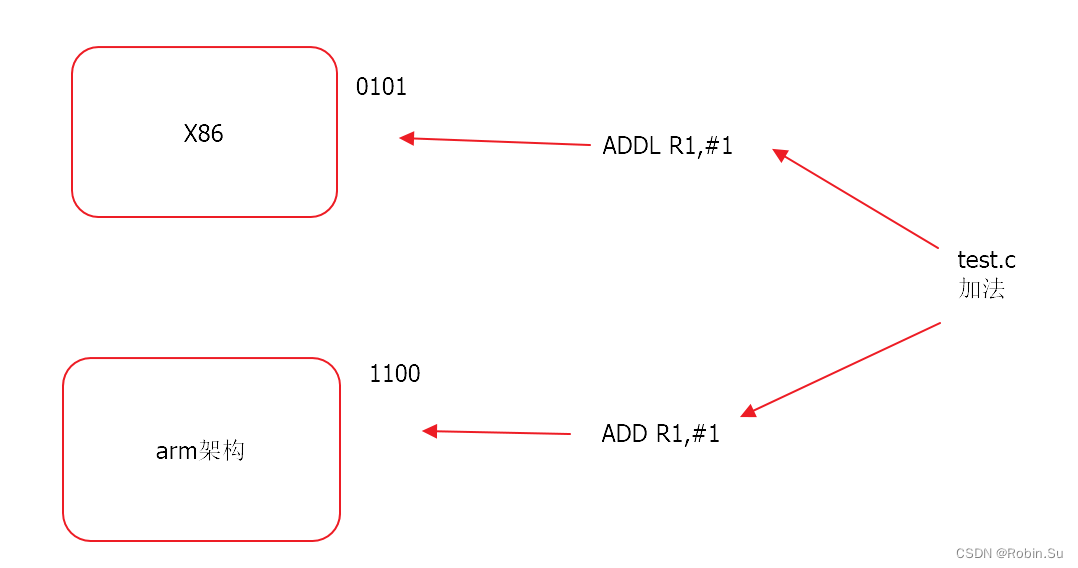 C语言在编译时我们可以使用不同的编译器将C源码编译成不同架构处理器的汇编,所以C语言可以移植