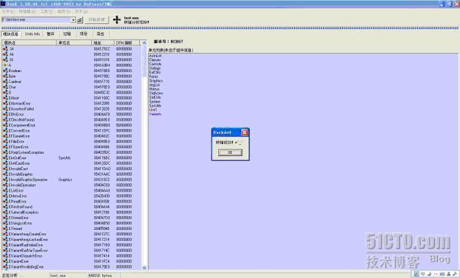 “1、”中只是示意图,我实际反编译的程序是由“BorlandC++ 1999”编写的,所以选择DeDe 3.5作为反编译工具;DeDe3.5的具体使用方法,请自行在网上查阅。