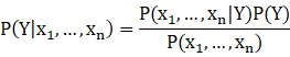 作为分母,通常不需要再计算或者说概率不需要归一化,因为我们只需要比较上式的分子大小就可以比较出在给定所有自变量的情况下不同目标变量的概率大小。
