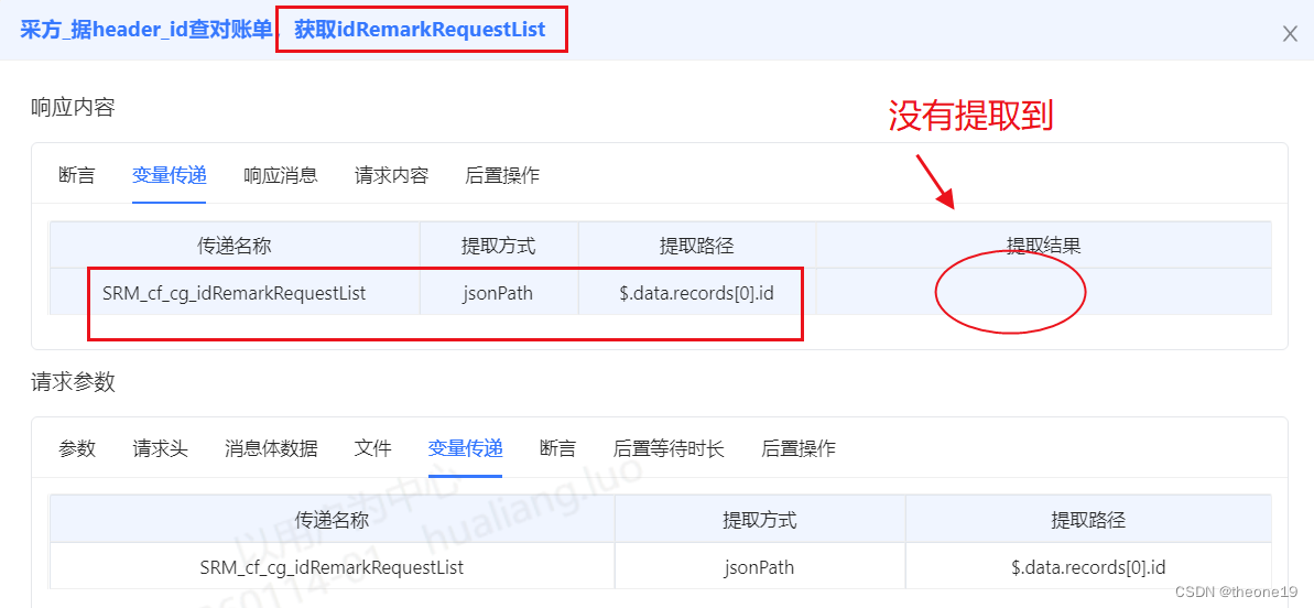 原因:是断言简单,只判断了状态码200,没有判断响应内容,从而没有获取到有效值
