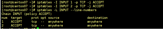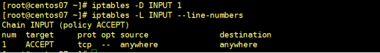 6)清空所有链中的规则,不指定链名清空所有表规则