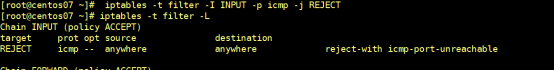 iptables -t filter -I INPUT -p icmp -j REJECT