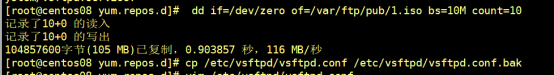 dd if=/dev/zero of=/var/ftp/pub/1.iso bs=10M count=10