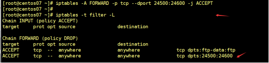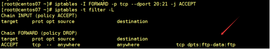 iptables -I FORWARD -p tcp --dport 20:21 -j ACCEPT
