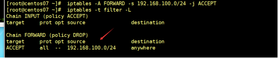 iptables -A FORWARD -s 192.168.100.0/24 -j ACCEPT