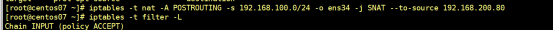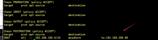 iptables -t nat -A POSTROUTING -s 192.168.100.0/24 -o ens34 -j SNAT --to-source 192.168.200.80