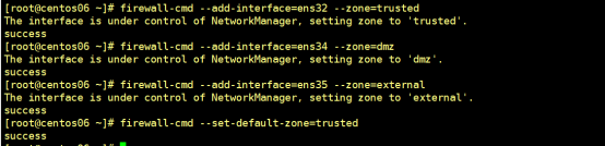 firewall-cmd --add-interface=ens32 --zone=trusted