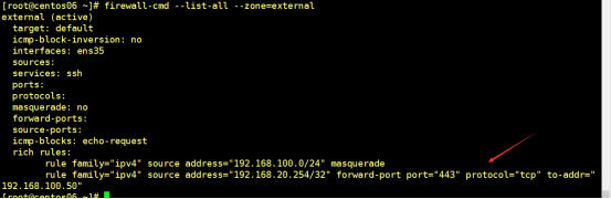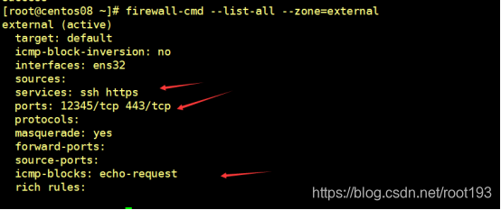 firewall-cmd --list-all --zone=external
