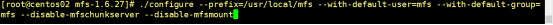 ./configure --prefix=/usr/local/mfs --with-default-user=mfs