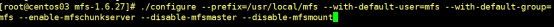 ./configure --prefix=/usr/local/mfs --with-default-user=mfs --with-default-group=