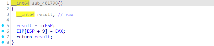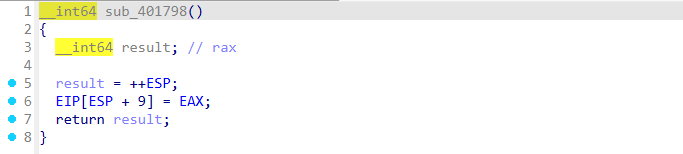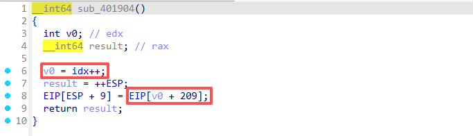 在 case 4 - case 6 全部用到了这个 EIP[ESP + 9]
