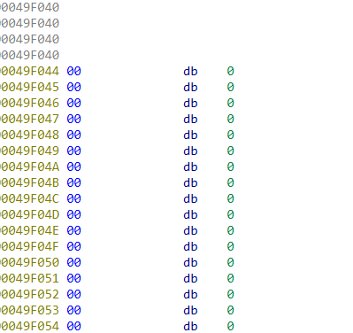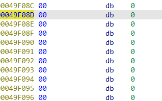 查看 49F08D 什么值都没有,但是注意到数据全是 db(byte)字节,